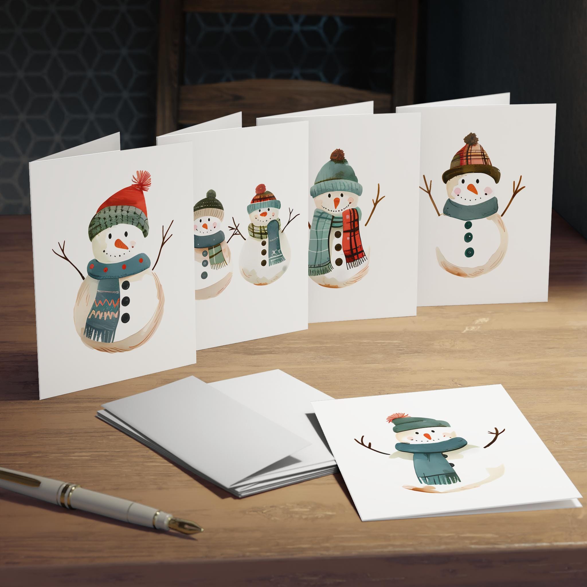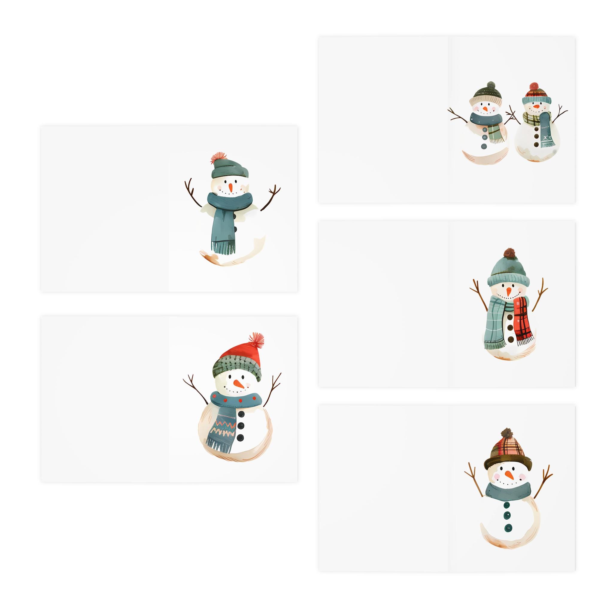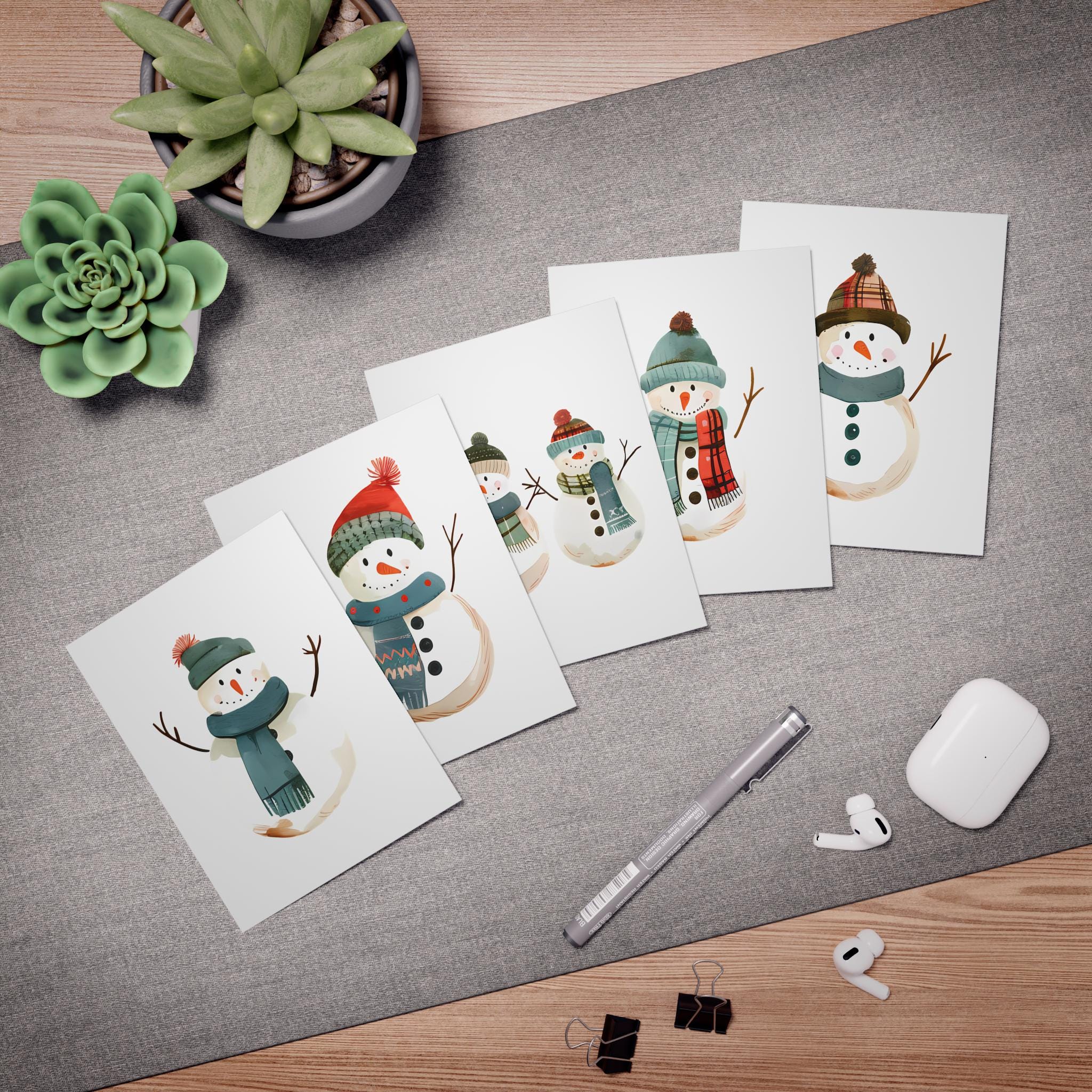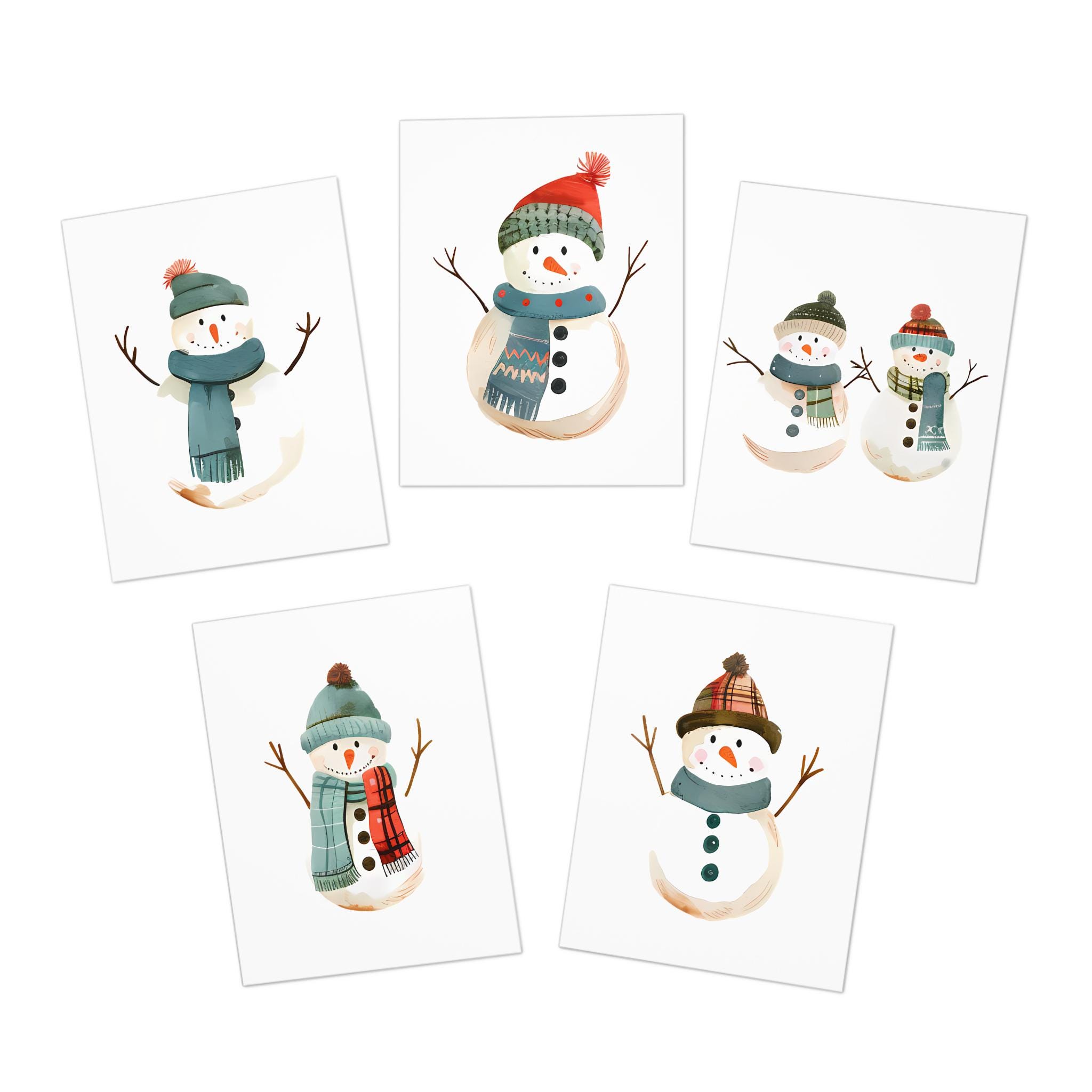 Whimsical Snowman Greeting Cards, Seasonal Holiday Cards, Winter Greetings, Festive Note Cards, Christmas Card Set, Cute Snowman Art