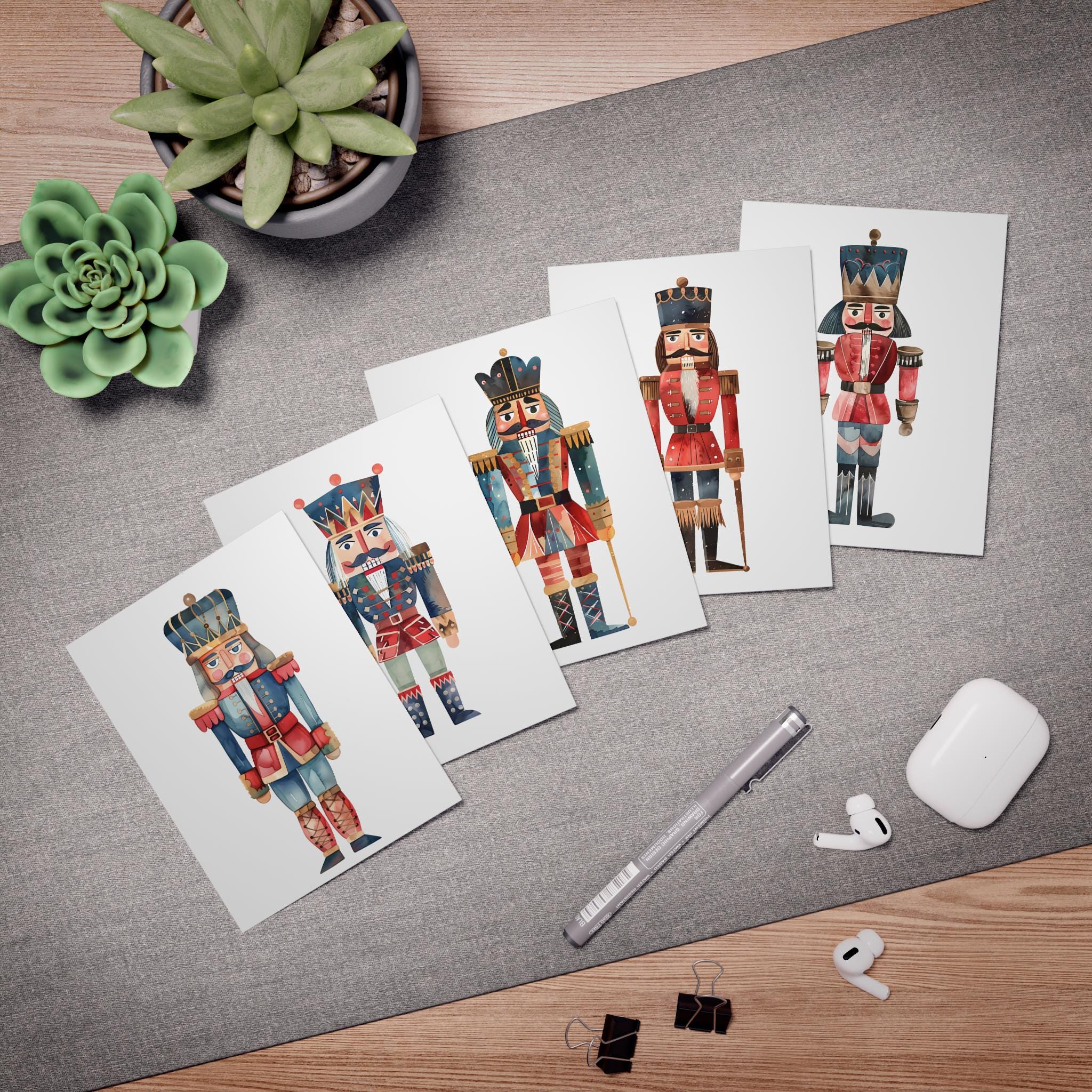 Nutcracker Greeting Cards 5-Pack, Festive Holiday Cards, Christmas Greetings, Nutcracker Collection, Handmade Card Set, Holiday Decor