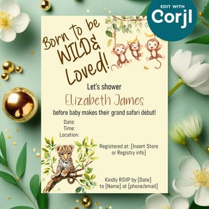 Safari Baby Shower Invitation: Jungle Animals, Editable Template (Digital Download)