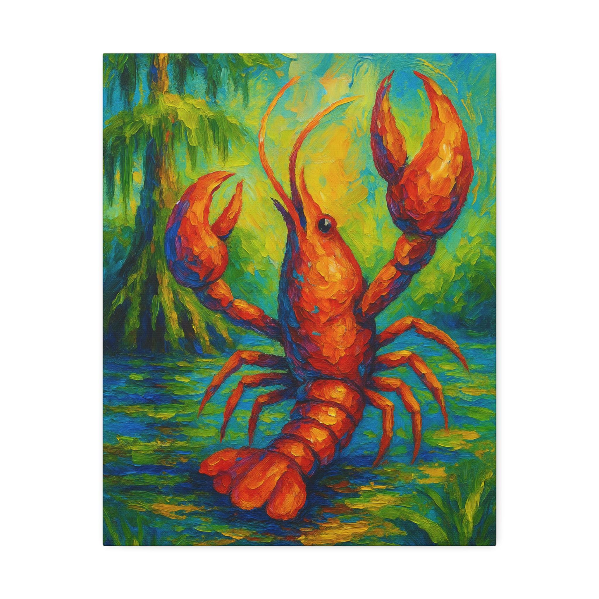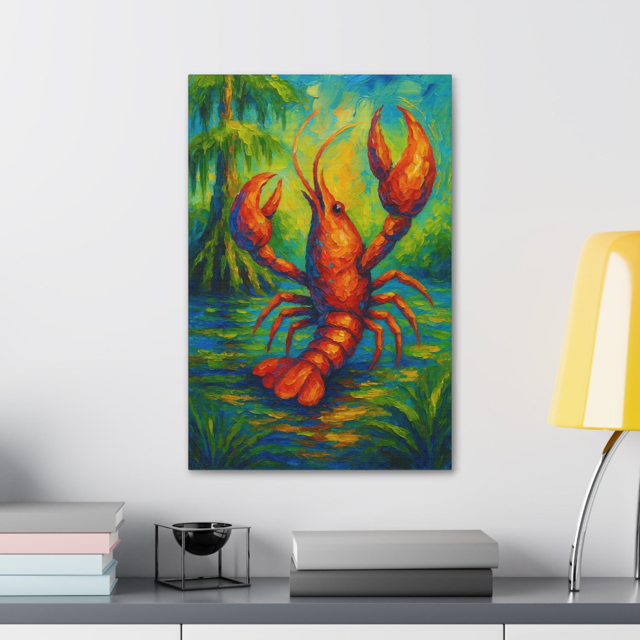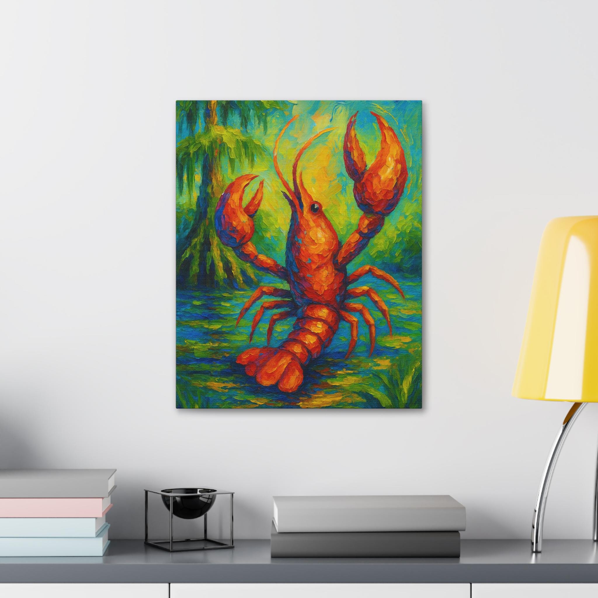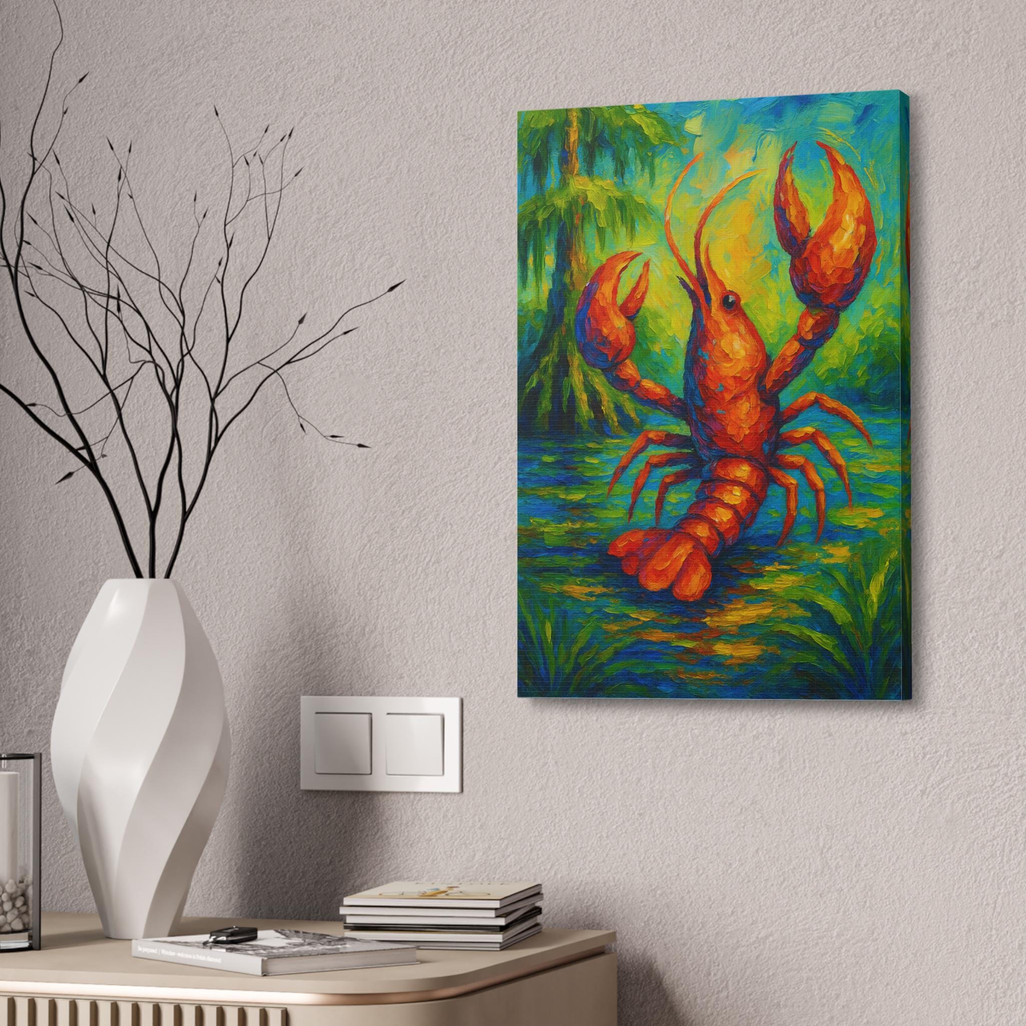 Vibrant Crawfish Canvas Art, Bayou-Themed Wall Decor, Coastal Home Decor, Seafood Lover's Gift, Colorful Crawfish Painting