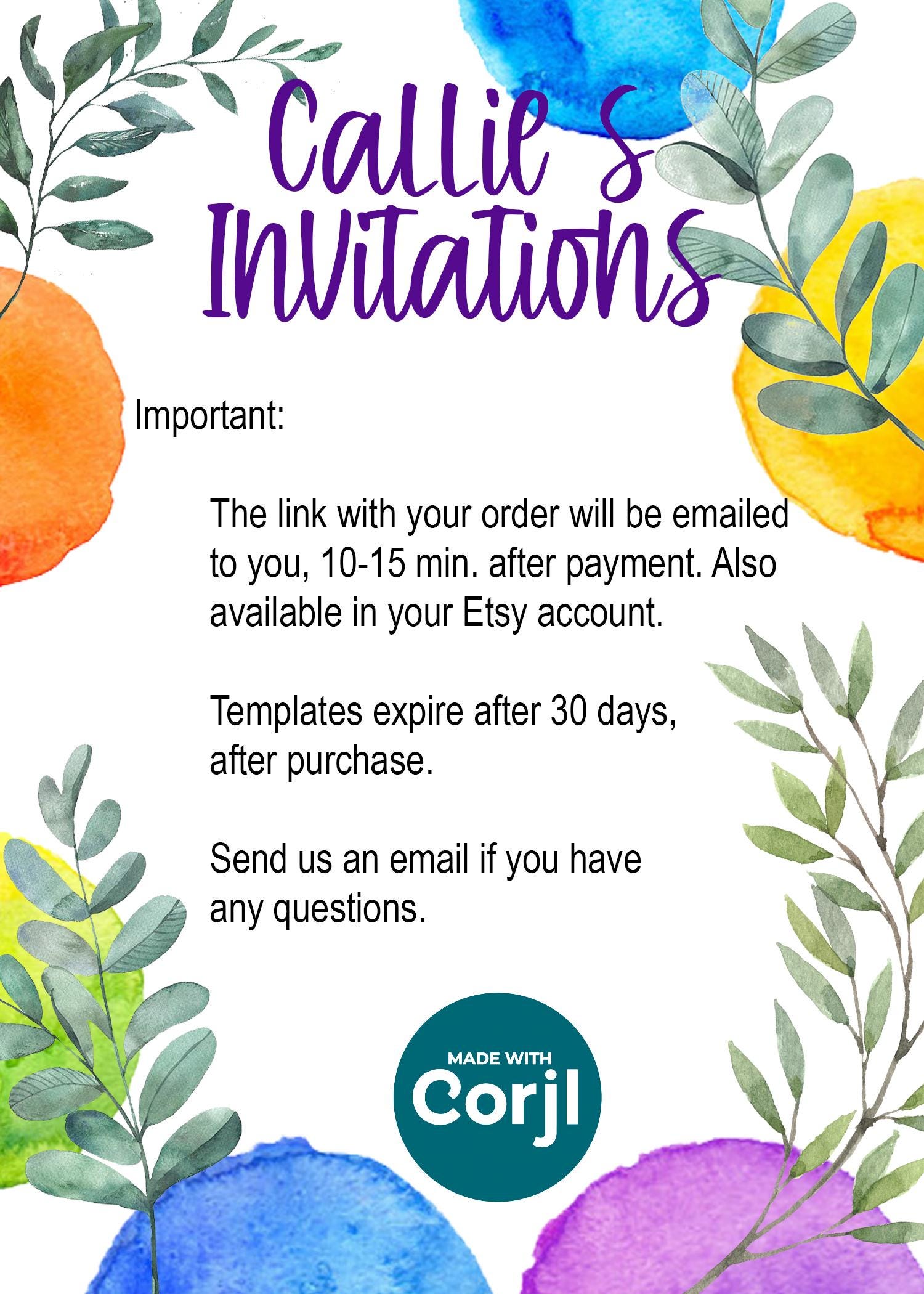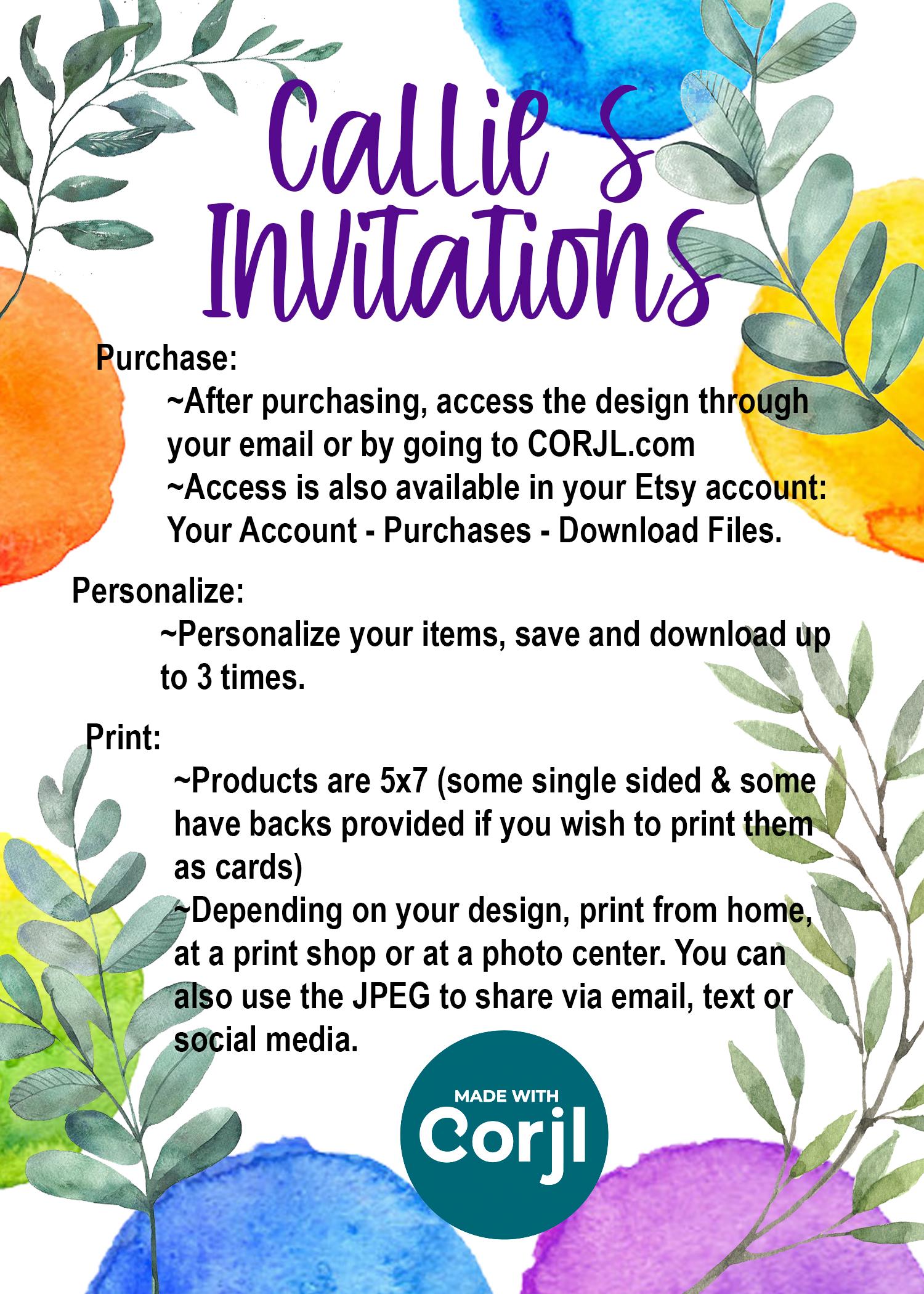 **Purchase, edit and print instantly!! Using the CORJL file link there is no need to download any software or create any accounts. There is NO physical product, this is a DIGITAL DOWNLOAD ONLY.**