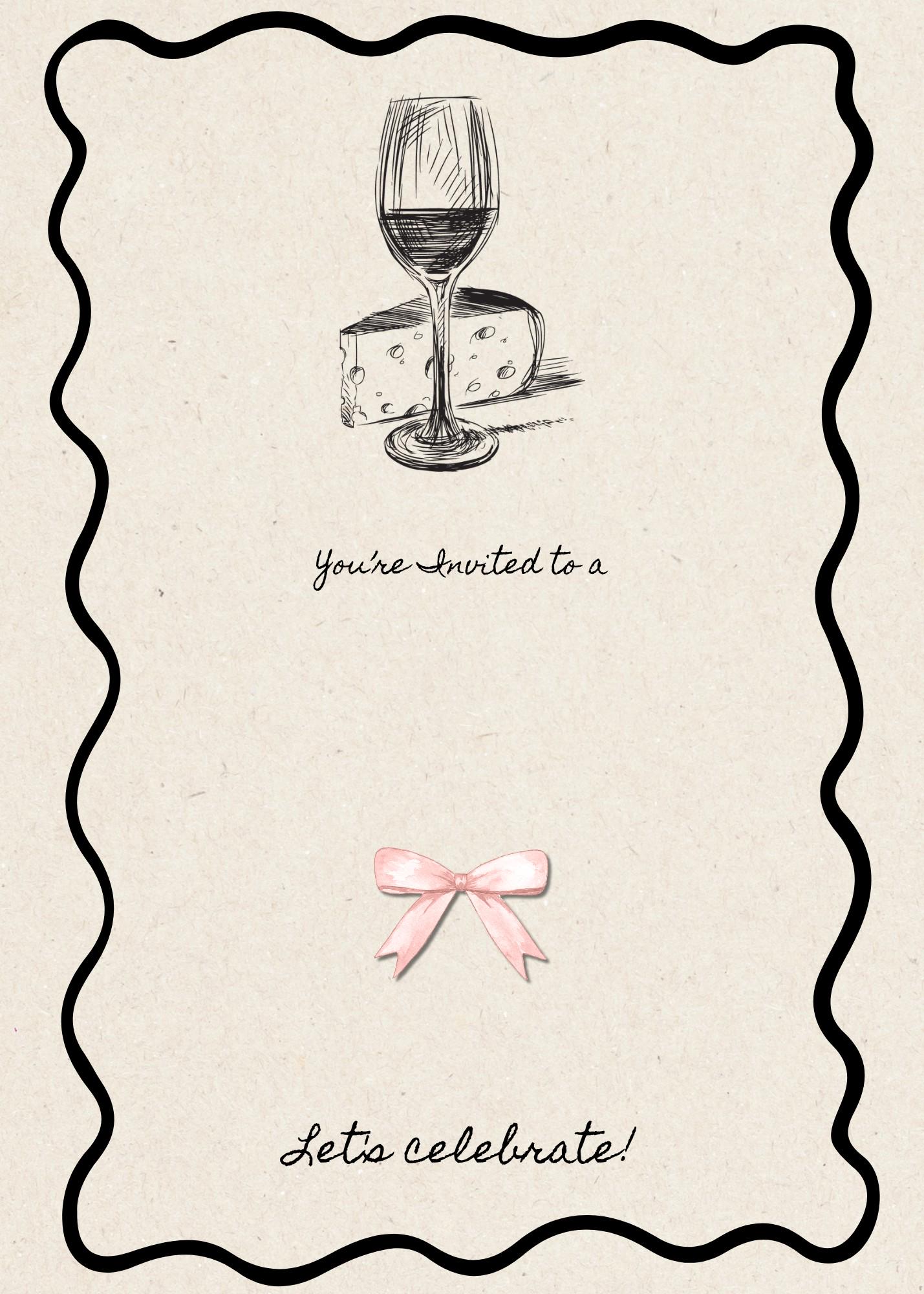 Vintage Dinner Party Invitation, Editable, Wine Cheese & Pink Bow, Digital Download, Sophisticated, Simple