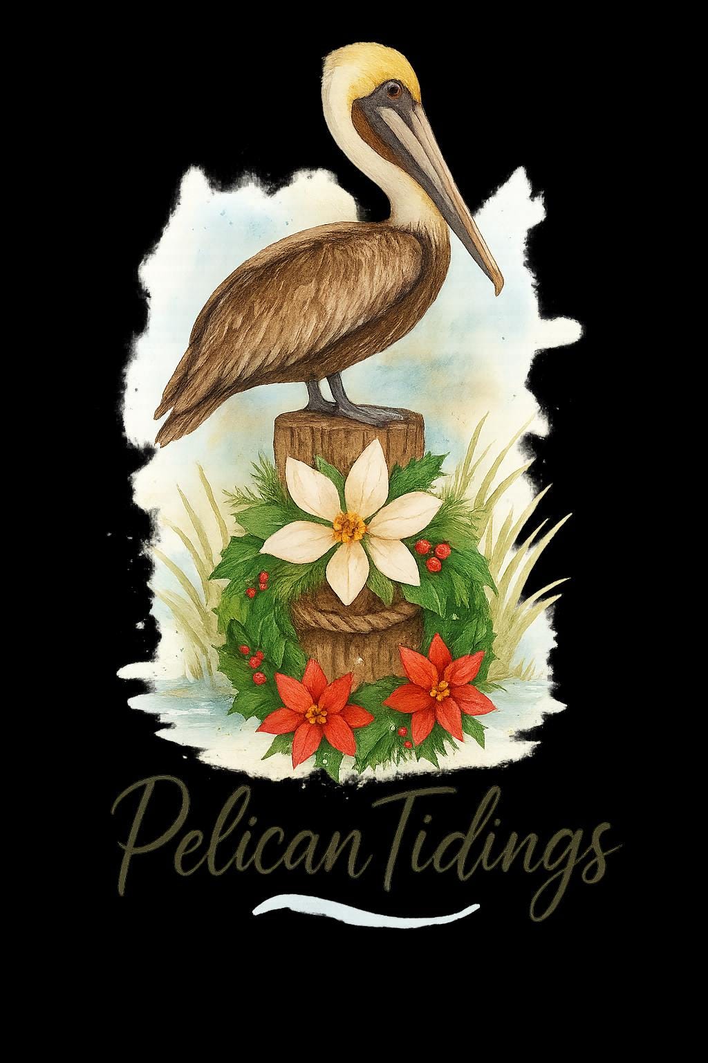 Bring a warm coastal twist to your holiday décor with this charming “Pelican Tidings” Christmas art print. Featuring a beautifully illustrated pelican perched on a wooden post surrounded by festive greenery, poinsettias, and winter florals, this piece blends beach vibes with holiday cheer.