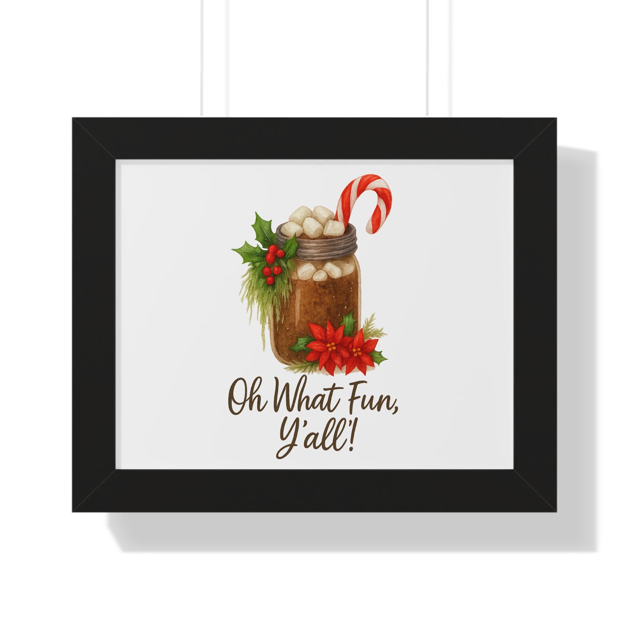 Southern Hot Cocoa Christmas Art | Oh What Fun Y’all Holiday Decor | Mason Jar Cocoa Illustration | Country Christmas Watercolor Art
