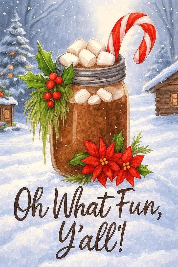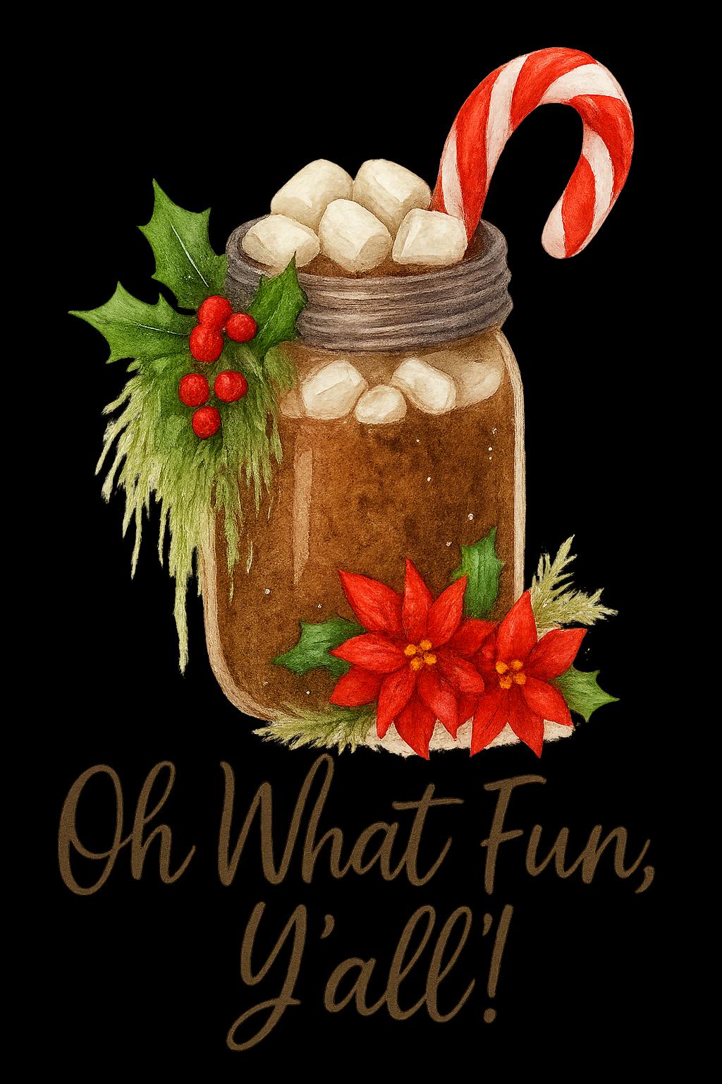 Southern Hot Cocoa Christmas Art Print | Oh What Fun Y’all Holiday Decor | Mason Jar Cocoa Illustration | Country Christmas Wall Art