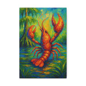 Vibrant Crawfish Canvas Art, Bayou-Themed Wall Decor, Coastal Home Decor, Seafood Lover's Gift, Colorful Crawfish Painting