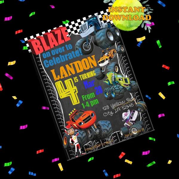 Get ready to rev up the fun with this Blaze the Monster Truck Birthday Invitation! Perfect for Blaze and the Monster Machines fans, this editable digital download makes party planning simple and exciting.